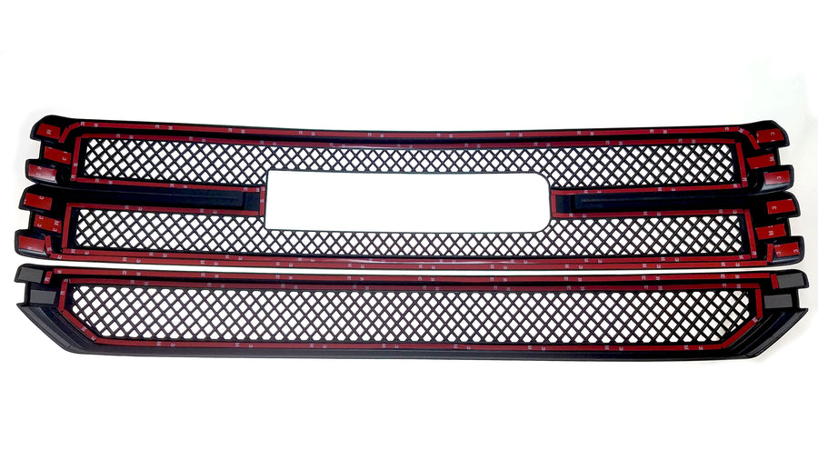 Improve the look of your vehicle with a custom grille overlay. Stand apart with different color options and finishes. Designed for simple installation. Manufactured with durable coatings designed to withstand the elements Whether you are looking for a subtle difference or a significant change to the appearance of your vehicle, Trim Illusions has a variety of grille overlay options to change the appearance of your vehicle and make it your own. Manufactured from premium ABS and durable coatings to withstand the rigors of mother nature and the road. Grille overlays are designed for easy installation and often can be installed in minutes. ATTN: State of California Consumers WARNING: Cancer and Reproductive Harm (www.p65warnings.ca.gov)-2016 GMC Sierra Trim Illusions Overlay Grille.