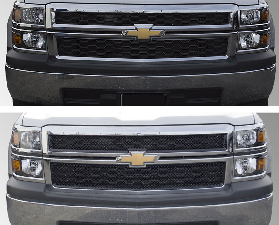 ABS6428BLK 14-15 Chevrolet Silverado 1500 WT/LT. NOT FOR SPORT MODELS 2 PCS Gloss Black Tape-on Grille Overlay