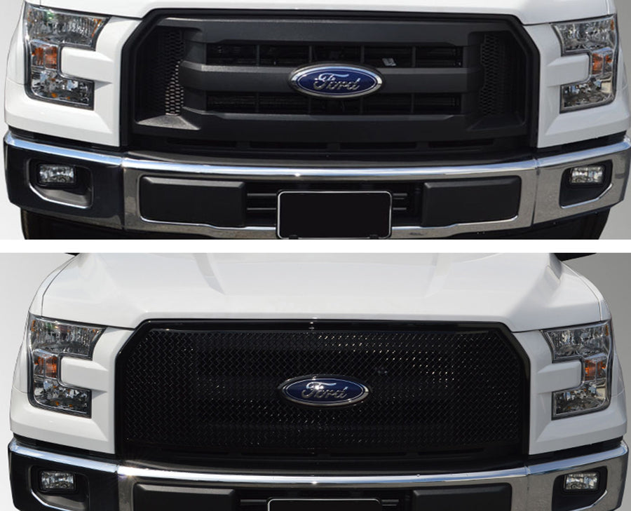 ABS6447BLK 15-17 Ford F-150 XL 1 PC Gloss Black Tape-on Grille Overlay