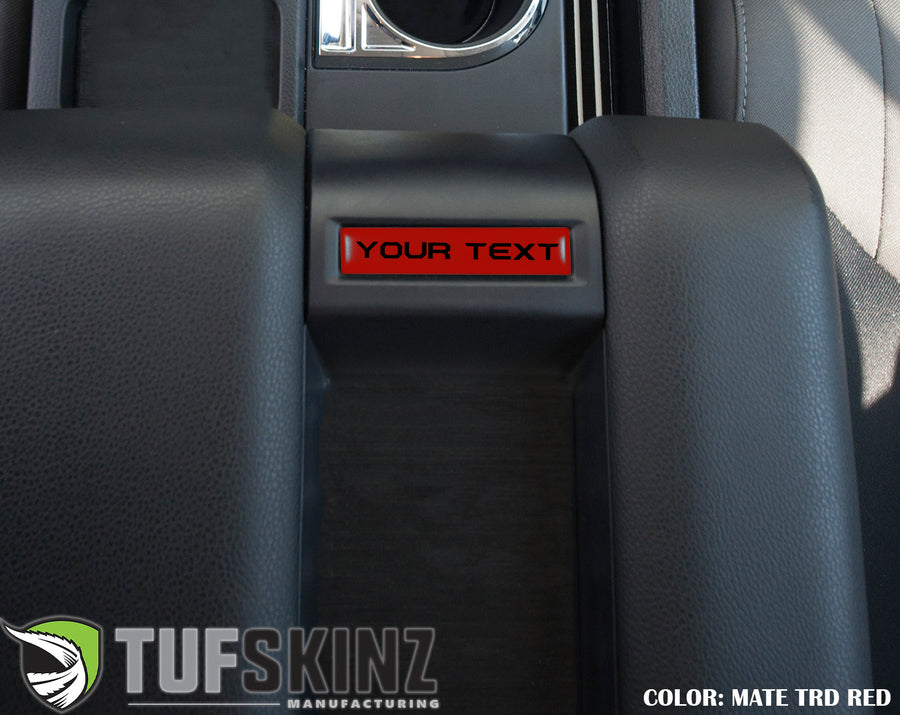 This custom text center?ÿconsole badge?ÿis designed for?ÿthe 2014-2021 Tundra?ÿmodels,?ÿ available with up to 6 characters. The badge?ÿis?ÿmanufactured with our 3 layer process designed to withstand all weather conditions. We guarantee?ÿno fading or pe